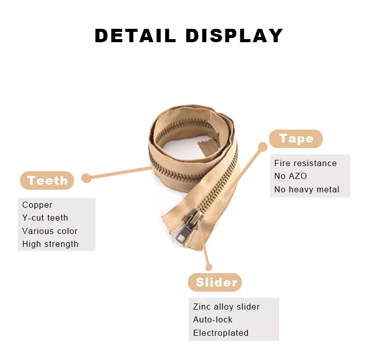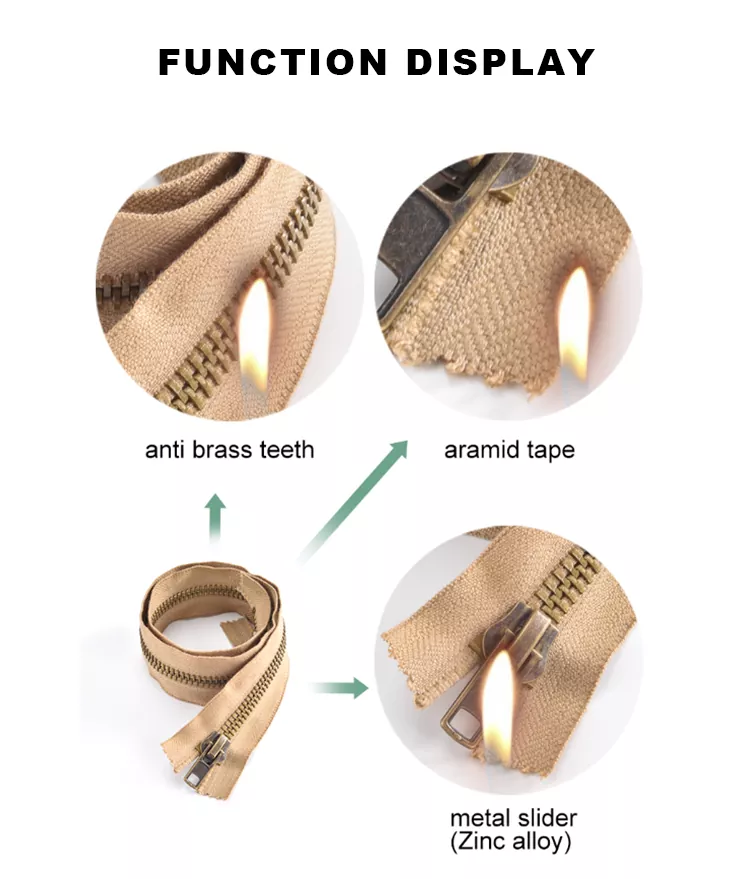 تم تصنيع السوستة المعدنية المقاومة للحريق من TRC من حزام عالي الجودة مقاوم للهب مع خصائص إطفاء ذاتي ممتازة، مما يمنع الحزام بشكل فعال من الاحتراق أو الاشتعال في الهواء، مما يحسن بشكل أساسي سلامة الملابس والمعدات. تشتهر هذه السحابات بمقاومتها الممتازة للحرارة، ويمكنها تحمل التعرض القصير لدرجات حرارة تصل إلى 300 درجة مئوية دون أن تنكمش أو تتشقق أو تذوب. إن أداءها المستقر ومتانتها الدائمة يجعلها خيارًا يمكن الاعتماد عليه للاستخدام في البيئات القاسية ذات درجات الحرارة العالية.