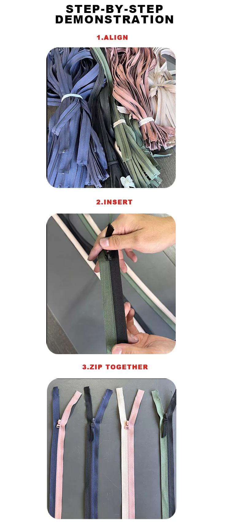 3. يمكن لجميع السوستة لدينا الاتصال بسلاسة بغض النظر عن اللون، الطول، أو دفعة الإنتاج.