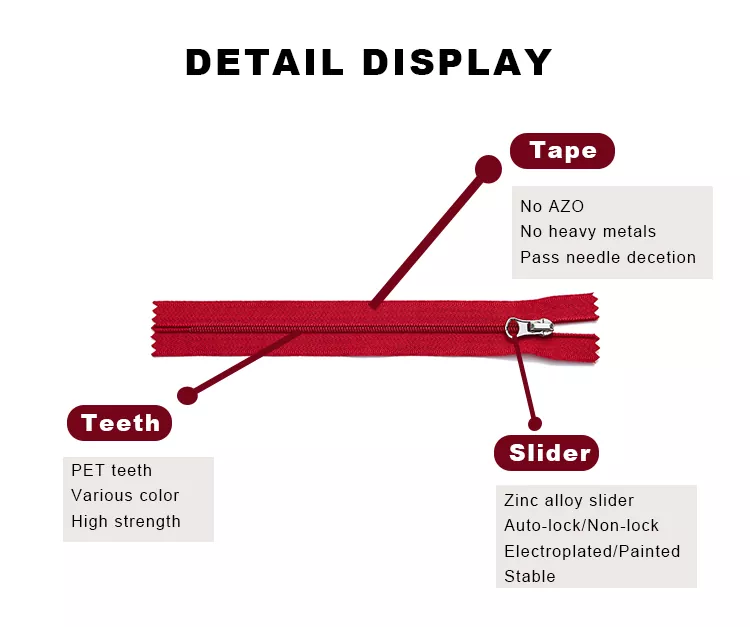 يتم تصنيع سحاب النايلون القياسي TRC باستخدام حزام البوليستر وأسنان النايلون عالية القوة، مما يوفر متانة خفيفة الوزن وتشغيل سلس. إنها تمثل نوع السوستة الأكثر استخدامًا على نطاق واسع.